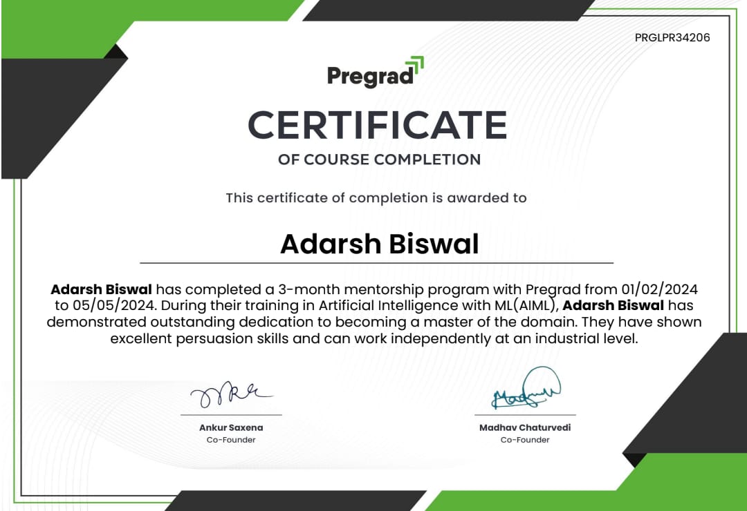 Gained hands-on experience in AI/ML concepts, including supervised and unsupervised learning. Worked on mini-projects and assignments to apply ML algorithms.